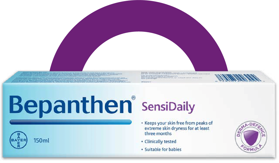Bepanthen® SensiDaily Moisturising Cream Derma‑Defense Formula contains a prebiotic to support the skin microbiome1