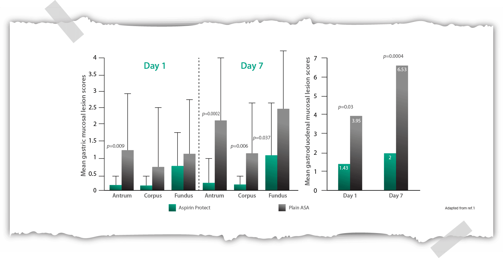 Enteric-coated aspirin 100 mg/day causes significantly less